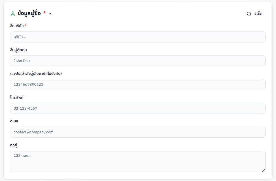 ข้อมูลลูกค้าของคุณที่จะแสดงบนเอกสาร